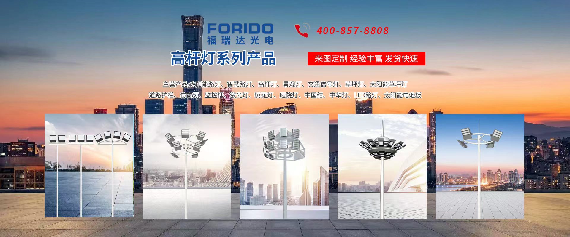 揚州福瑞達光電科技有限公司位于淮左名都歷史文化名城、中國路燈制造基地揚州市北郊菱塘工業(yè)園,公司占地面積76000平方米,注冊資金10518萬元,擁有高級技術(shù)嫻熟的員工280多人,擁有大型折彎機、激光切割、數(shù)控注塑機、壓鑄機、自動埋弧焊、氣焊、彩色粉末靜電噴塑等大型自動化設(shè)備,我公司是一家集設(shè)計、研發(fā)、生產(chǎn)、銷售、施工安裝服務(wù)為一體的戶外交通照明產(chǎn)品制造商,主要生產(chǎn)智慧路燈、太陽能路燈、LED路燈、高桿燈、景觀燈、交通信號燈、交通標(biāo)志牌、通信鐵塔、路跨鋼結(jié)構(gòu)、公交站臺、太陽能光伏組件、景點亮化、樓宇亮化工程的設(shè)計施工等。公司秉承開拓創(chuàng)新、銳意進取、精誠服務(wù)的企業(yè)精神,堅持以“誠信為本、技術(shù)為先、服務(wù)是金”的合作理念,我們憑借先進的制造工藝、優(yōu)質(zhì)的產(chǎn)品質(zhì)量、合理的市場價格和完善的售后服務(wù)贏得了廣闊的市場和客戶的信賴。 我公司已通過ISO9001質(zhì)量體系認證、ISO14001環(huán)境管理體認證,CQC產(chǎn)品認證,中國節(jié)能產(chǎn)品認證,通過“CCC”強制性產(chǎn)品認證,具有市政總承包,照明,交安,設(shè)計等資質(zhì)···